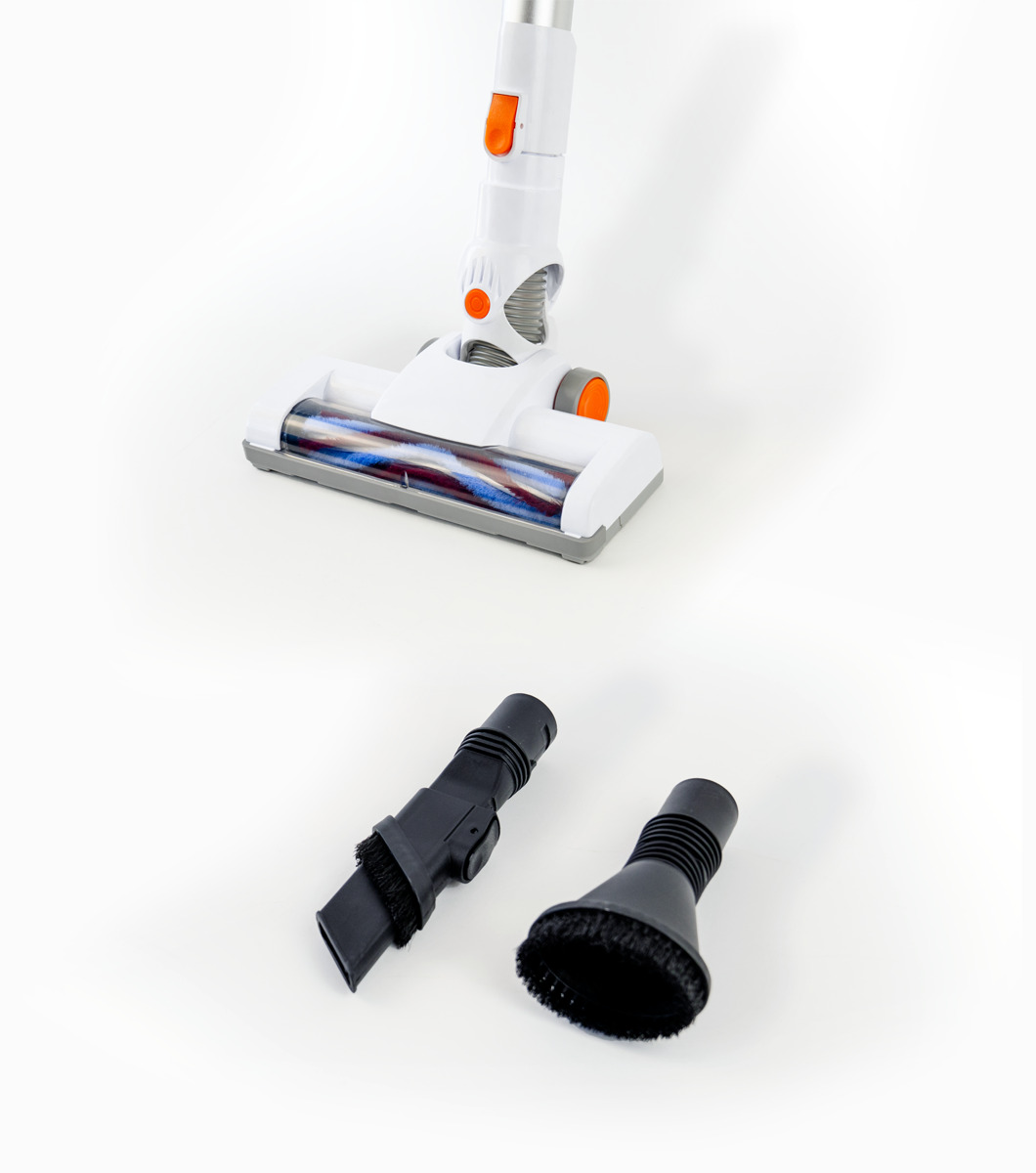 Incluye rodillo motorizado, varilla de extensión, cepillo 2 en 1 y cepillo para telas y cortinas. Con estos accesorios podrás llegar a todos los lugares difíciles de limpiar.