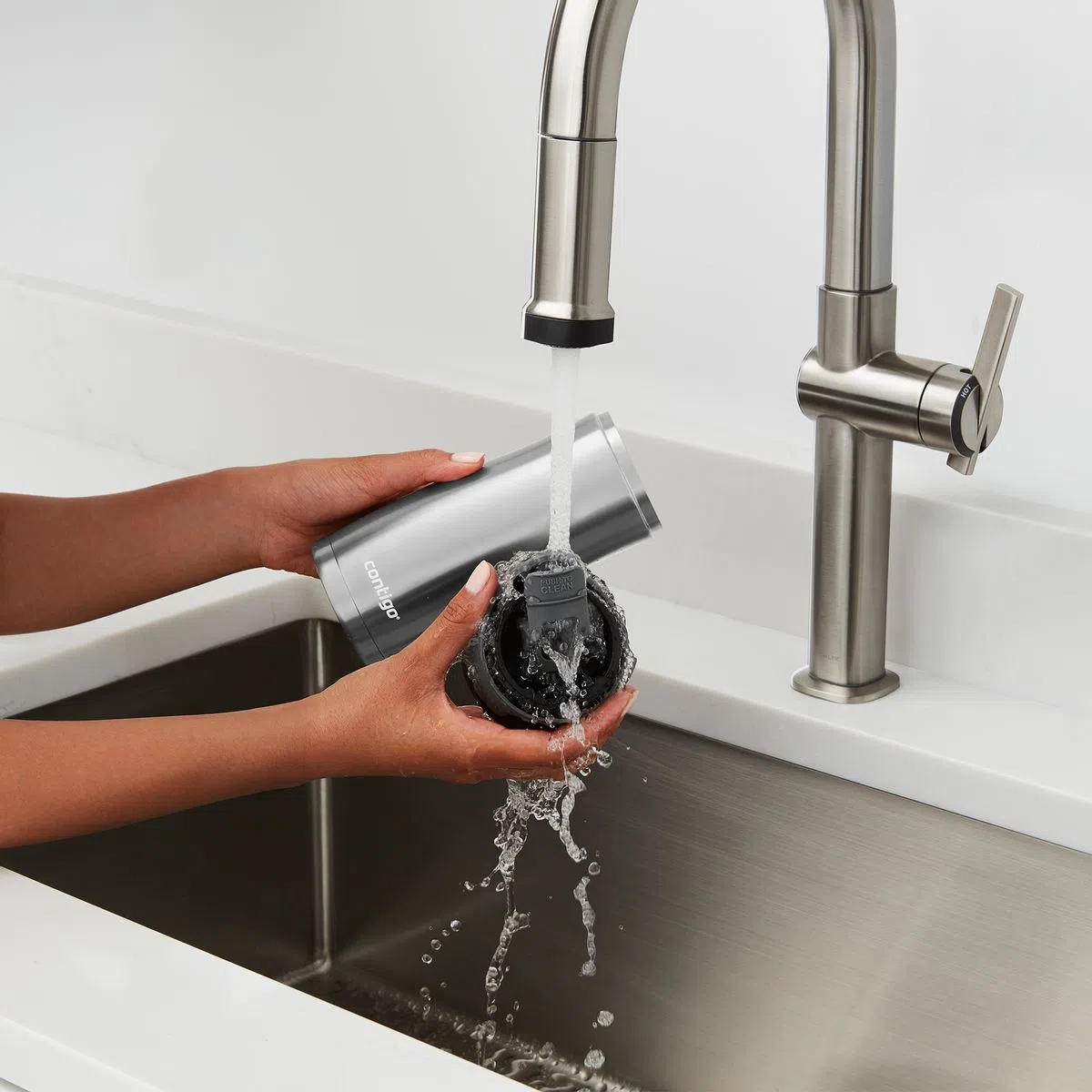 El Mug Westloop de Contigo® mantiene las bebidas calientes hasta por 6 horas y frías hasta por 12 horas. Cuenta con tecnología Thermalock™ con aislamiento de doble pared y botón de bloqueo que te brindan extra protección para que no tengas que preocuparte por derrames.