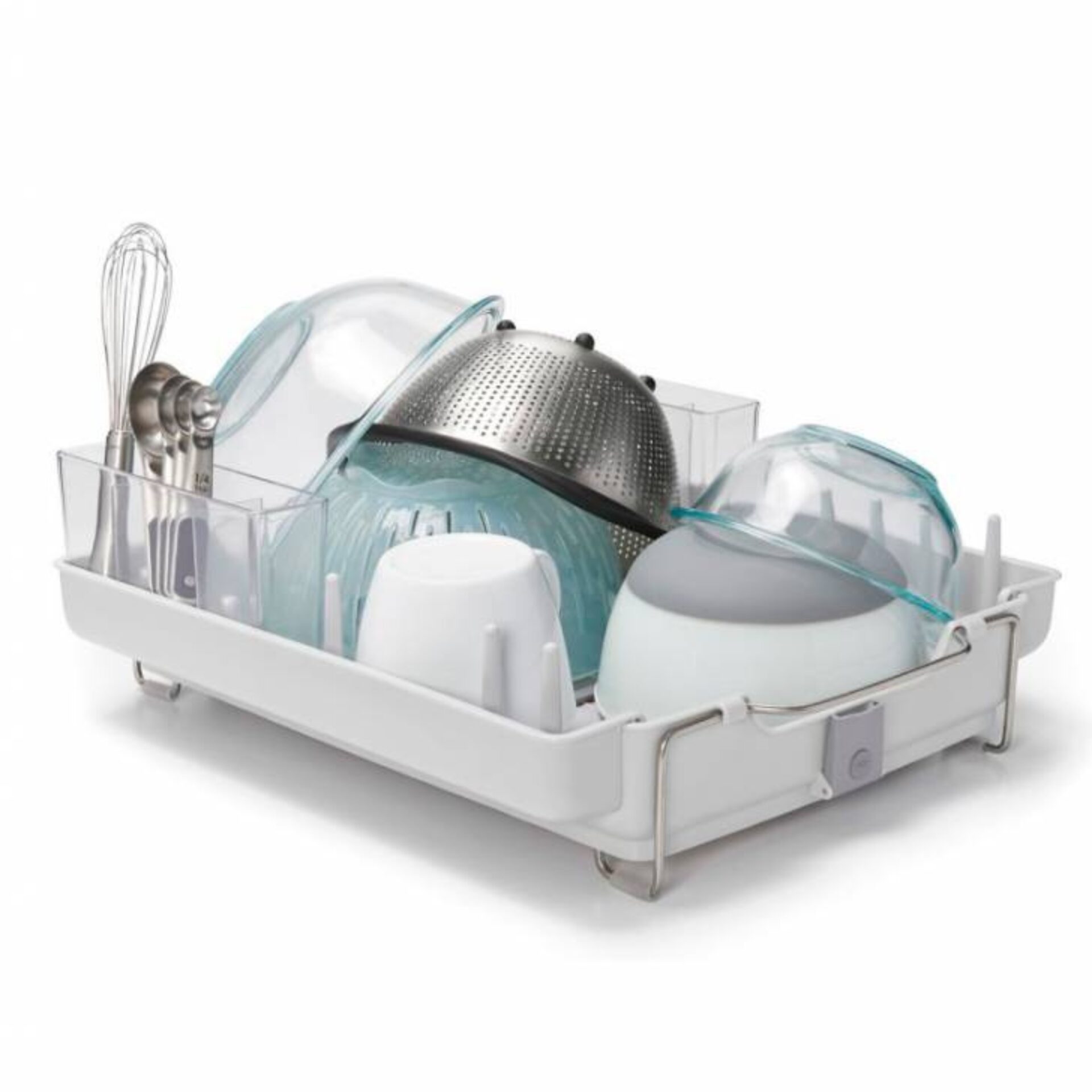 Optimiza el secado de la loza tu cocina con el Secaplatos Adaptable de Oxo, diseñado para ajustarse a utensilios de todos tamaños. Sus divisiones inteligentes permiten secar platos, vasos y cubiertos de manera ordenada, mientras que el tapón de silicona facilita el drenaje del agua. Con bordes y patas plegables, es el accesorio perfecto para una cocina eficiente y organizada. ¡Flexibilidad y funcionalidad en cada uso!