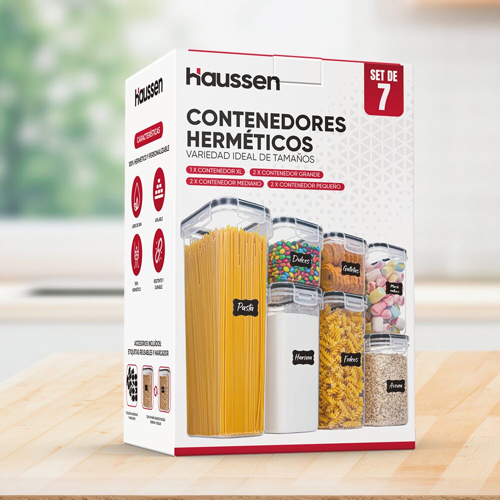 Organizar y ordenar tu cocina ahora será fácil y rápido con nuestros Contenedores Herméticos. Son ideales para pastas, granos, cereales, legumbres y lo que quieras. ¿Lo mejor de todo? ¡Son apilables! Podrás aprovechar tu espacio al máximo. Su cierre hermético va a mantener tus alimentos frescos y secos todo el tiempo. Además incluye el set incluye 24 etiquetas reutilizables y un marcador que podrás usar para etiquetarlos!
